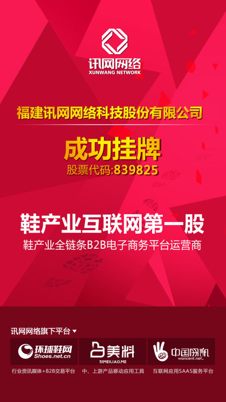 此次訊網網絡掛牌,正式成為國內鞋產業互聯網“第一股”,彰顯了公司作為鞋行業互聯網資訊第一平臺、B2B在線交易領先平臺的行業地位。下一步,公司將利用供給側改革、制造升級、B2B電商風口等發展機遇,以“經緯鑄球,閉環生態”為業務架構,打通鞋行業上中下游企業及產品這一用戶“經線”,建立企業專業資訊、在線交易、供應鏈金融、數據服務這一業務“緯線”,開放聯結,構建起連接鞋企一切互聯網需求的電商生態圈。