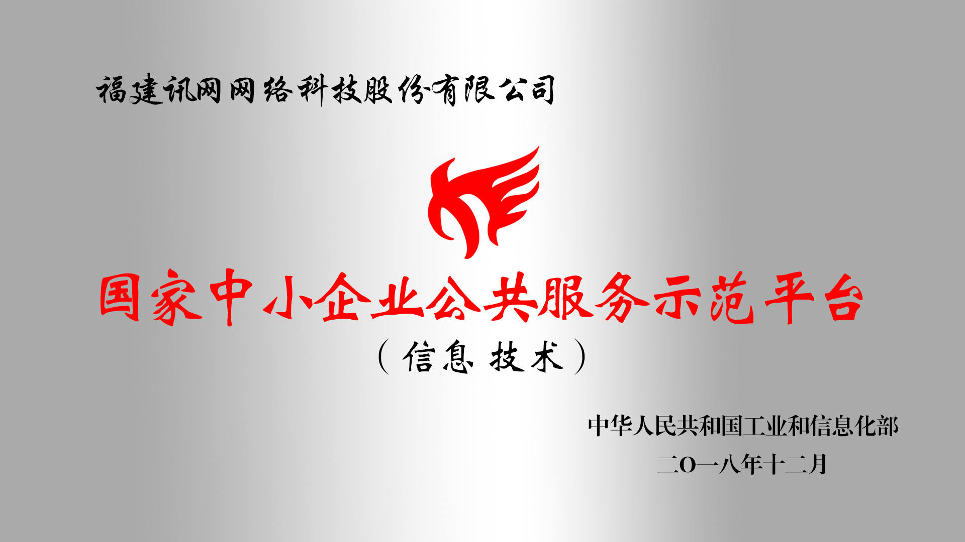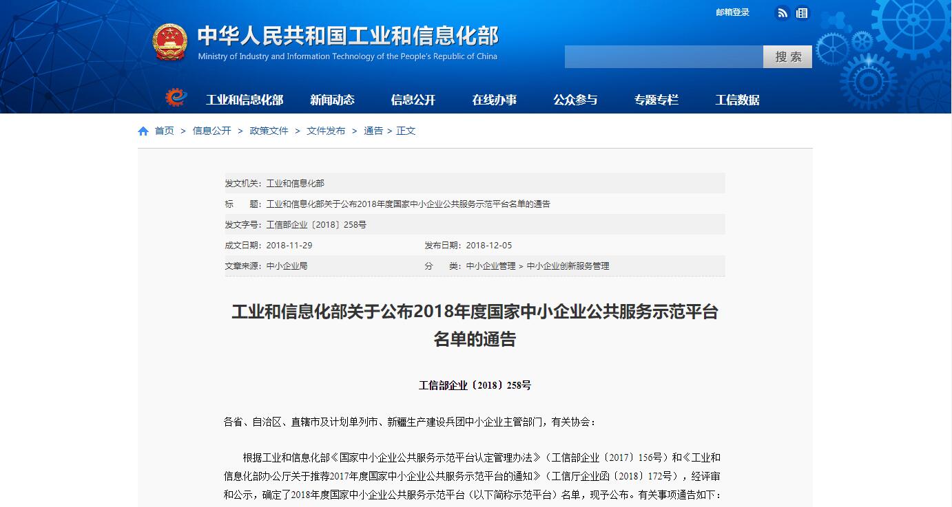 經工信部評審及公示后,12月5日,工信部正式公布了“2018年度國家中小企業公共服務示范平臺”名單,福建訊網網絡科技股份有限公司(以下簡稱“訊網網絡”)成功入選。