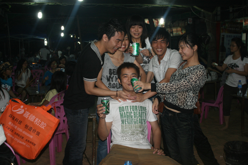 眾人忙著準(zhǔn)備燒烤材料